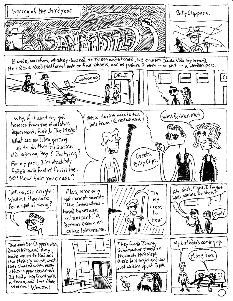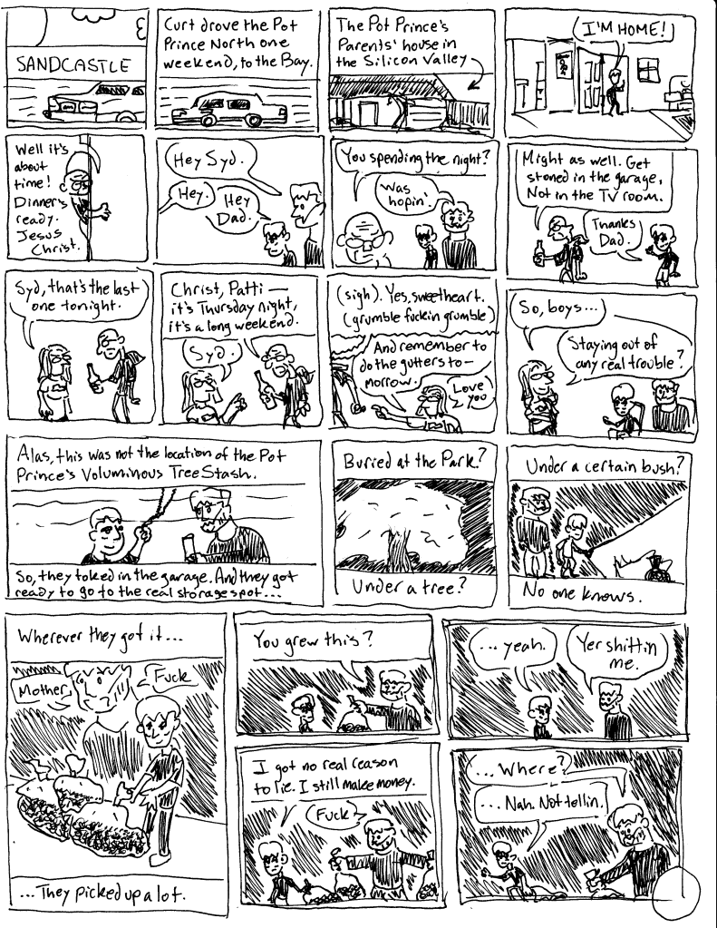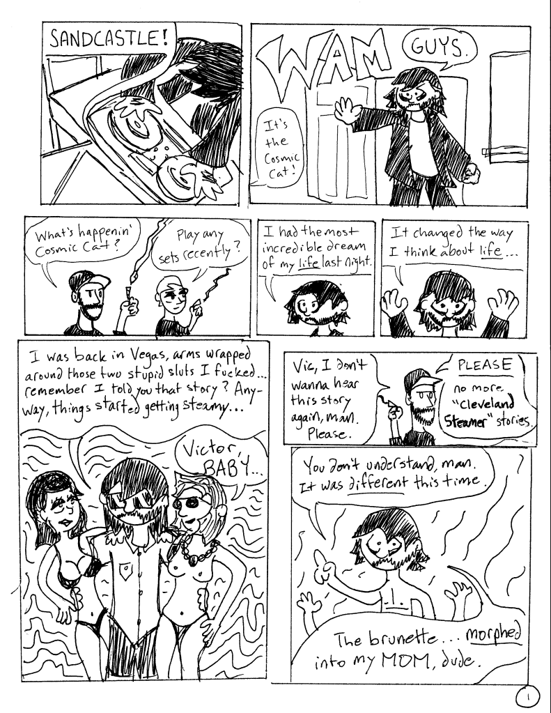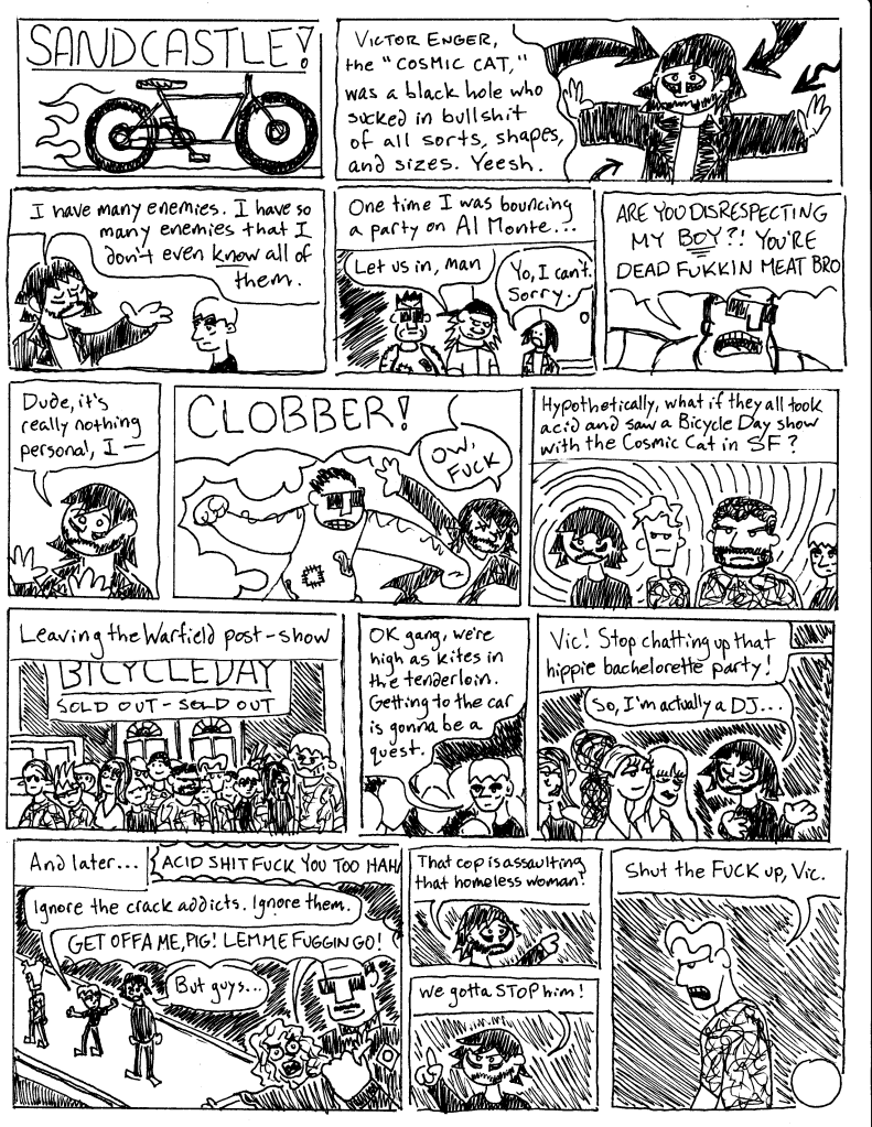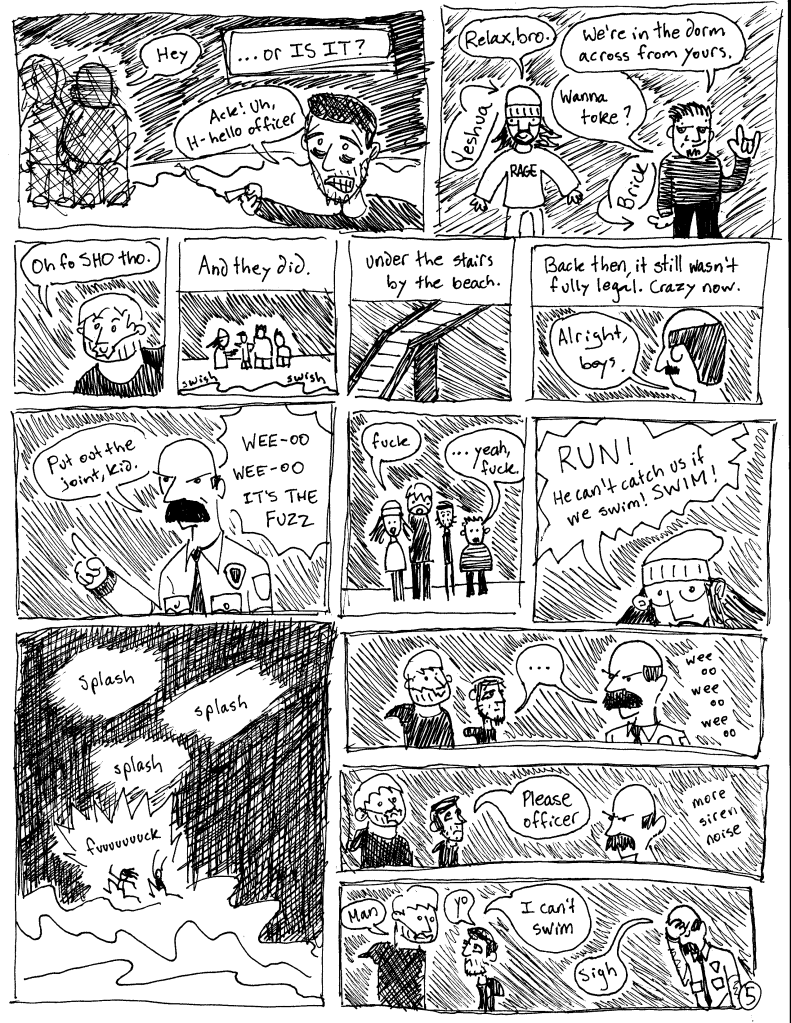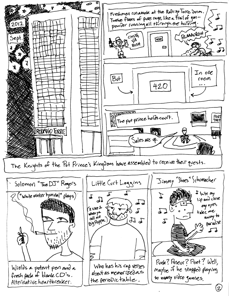 The first iteration of Sandcastle was a partly finished graphic novel written and drawn in black ink, mostly on sheets of newsprint in 2020.