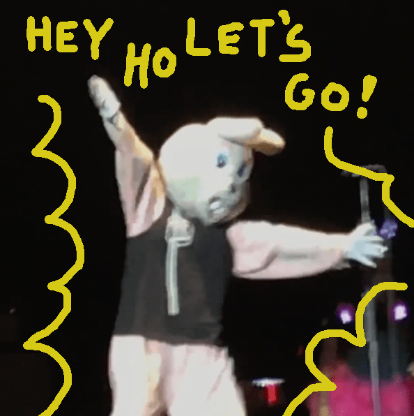 The set began with some dude in a pink rabbit mascot costume dancing faux-drunkenly to “Blitzkrieg Bop,” followed by a relatively mid clip show of various noteworthy classic rock moments—a kind of Canton, Ohio Rock ‘n’ Roll Hall of Fame-centric, not-so-secret society propaganda for the way things used to be—a club that Green Day clearly wants to portray itself as belonging to. This makes sense, but the overwhelming gorgonzola stench of it all made me nervous. Was this about to be a posturing, misguided attempt to cement the band’s legacy, or would there be an ounce of self-awareness anywhere in this set? Finally, they took the stage. The second Billie Joe’s eyeliner-caked, wrinkled face appeared, the crowd lost its collective shit.