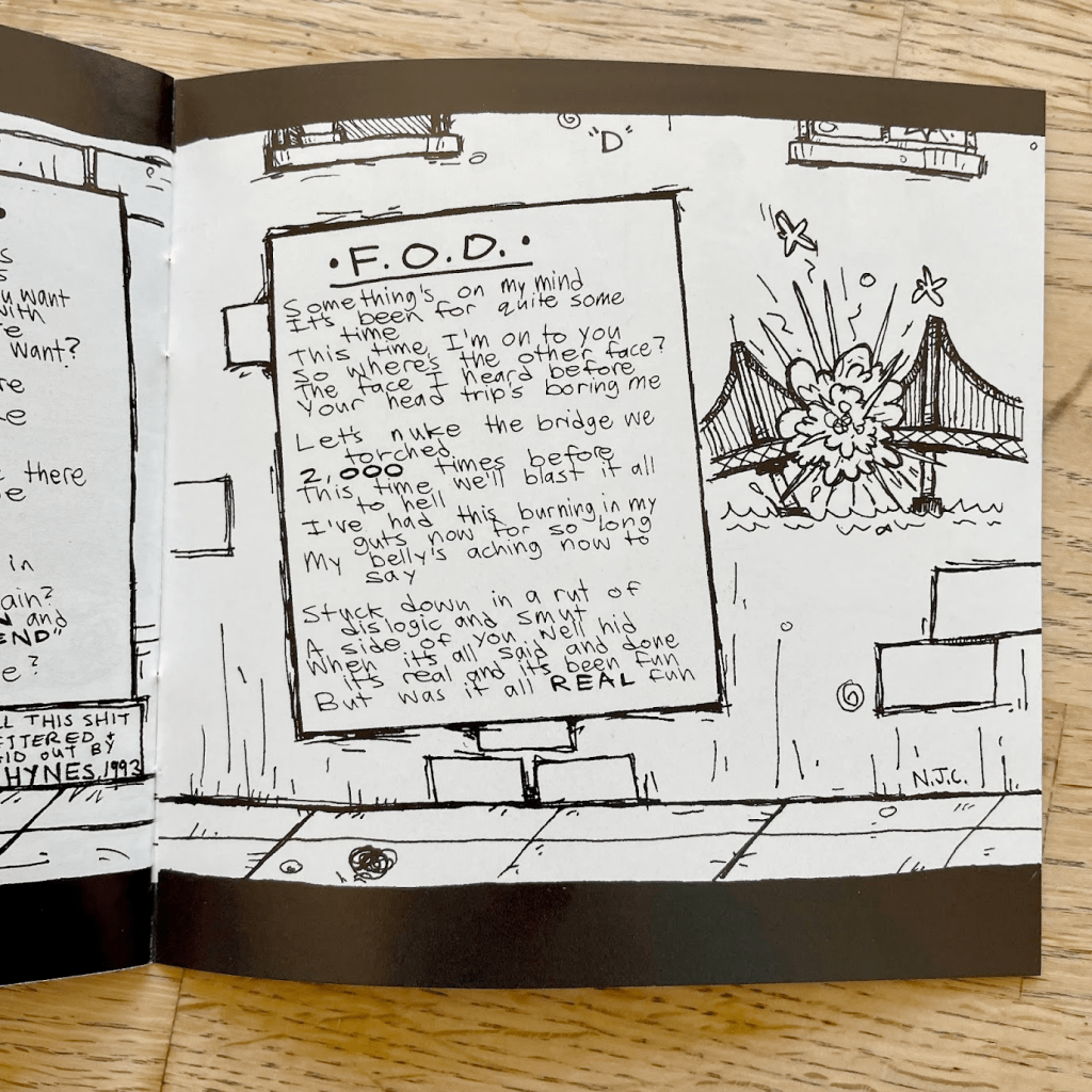 I’m not sure what first did it. College radio, maybe. I worked at a public station between 2012 and 2016, in the predatory heyday of southern california bubblegum trash-rock and the last great days of San Francisco garage-psych. Admittedly, those were not strong years for Green Day. I wasn’t even paying close attention to them at that point—I’d moved on to Epitaph and Fat Wreck Chords, Bomb the Music Industry, Flogging Molly and the Aquabats and (ugh) an embarrassing amount of third-wave ska-punk (Mustard Plug, anyone?) as I advanced through high scool, developing a raging snide streak and a major authority problem along the way. I’d even flirted with other East Bay bands, contemporaries of the young Green Day—Rancid especially. But on the door of our college Music Director’s office, a constantly shapeshifting menagerie of snark-tastic stickers stacked so thick it stuck out an inch from the door itself, was the taped-aloft CD booklet from Green Day’s Uno! Dos! Tre! album trilogy, with “DO NOT PLAY THIS BULLSHIT” or some such message brazenly and defiantly plastered across it in cold, judgmental black sharpie.